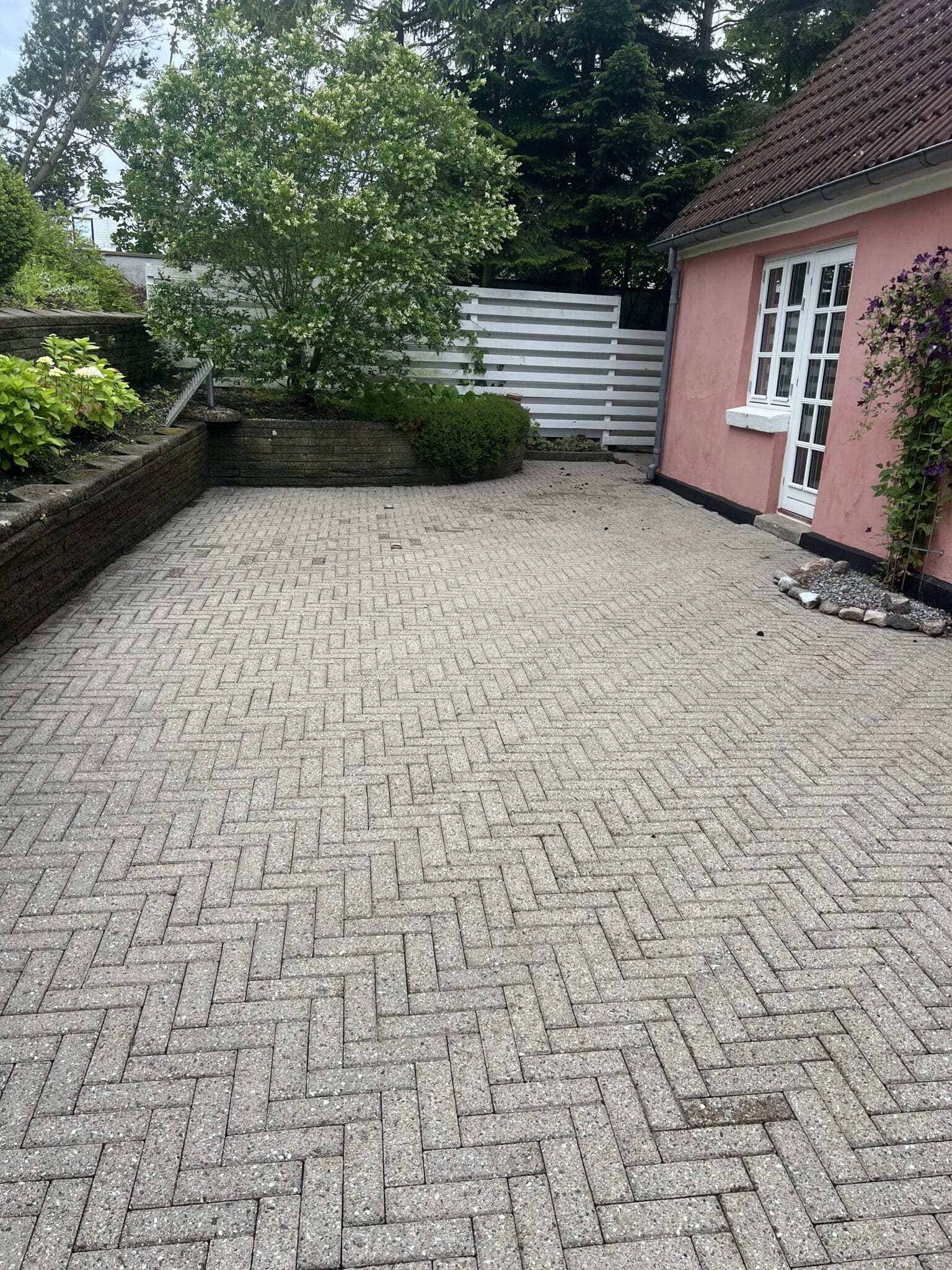 Ønsker du fliserens, der virkelig virker – og som giver dine udendørsarealer et løft, uanset om du er privatkunde eller erhvervskunde i Grenaa, Hornslet, Randers eller Ebeltoft?